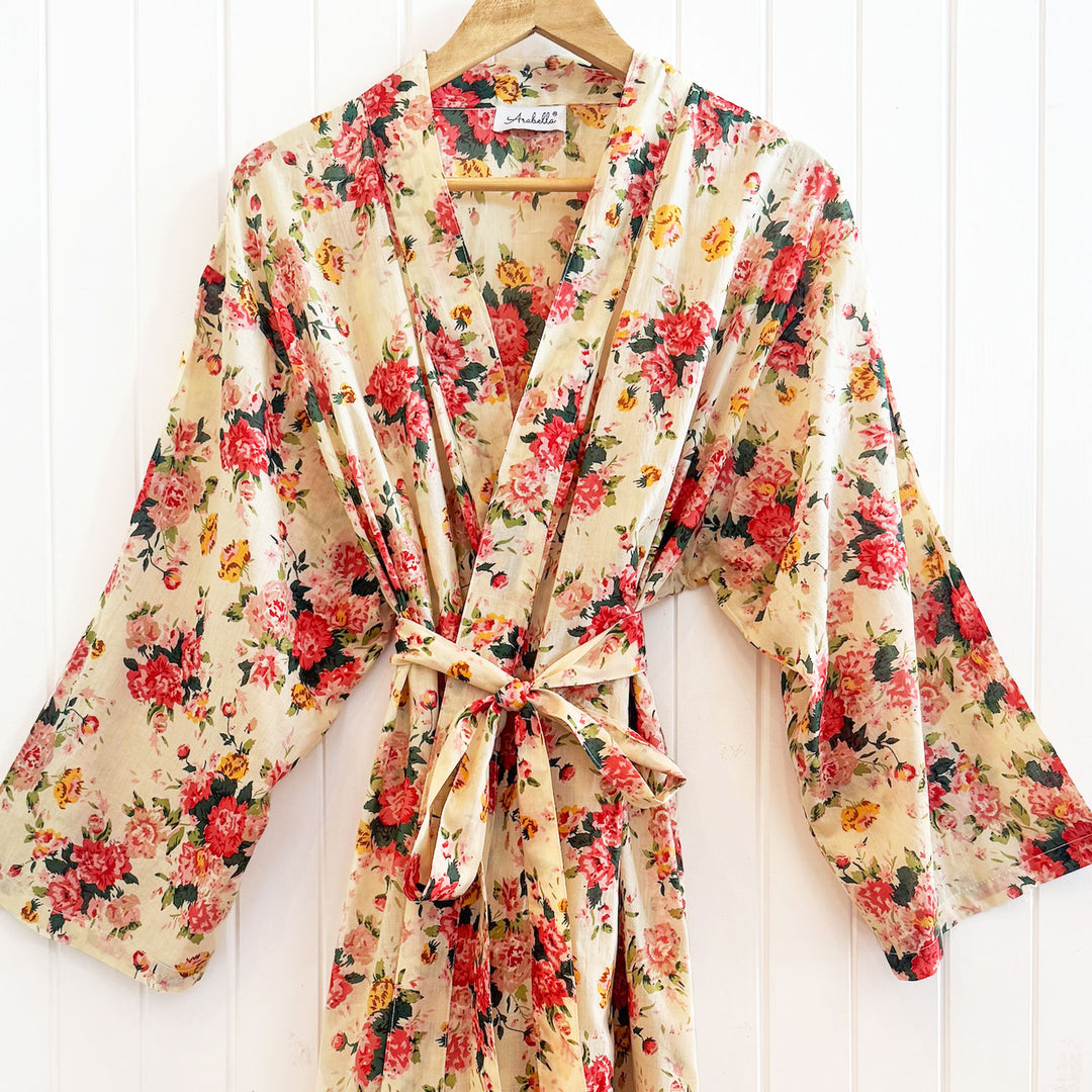 Beautiful floral cotton kimono robes are lightweight and effortlessly gorgeous, offering comfort, good coverage and natural, breathable textiles. They are easy to wash and durable, long-lasting and make amazing gift to someone special. Sign up to our newsletter to get a 10% off of your first order and be informed about all the exciting new arrivals and special offers!