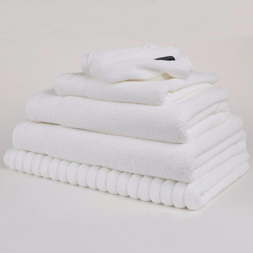 Available in a 650gsm design and made of a unique single-ply absorbent yarn, the long-lasting Bemboka Cotton Bath Towels are finished with a beautiful mercerised cotton, pique border. Designed to encompass fine chenille ribbed stripes with a classic, neutral colour palette, the collection is a timeless bathroom staple.