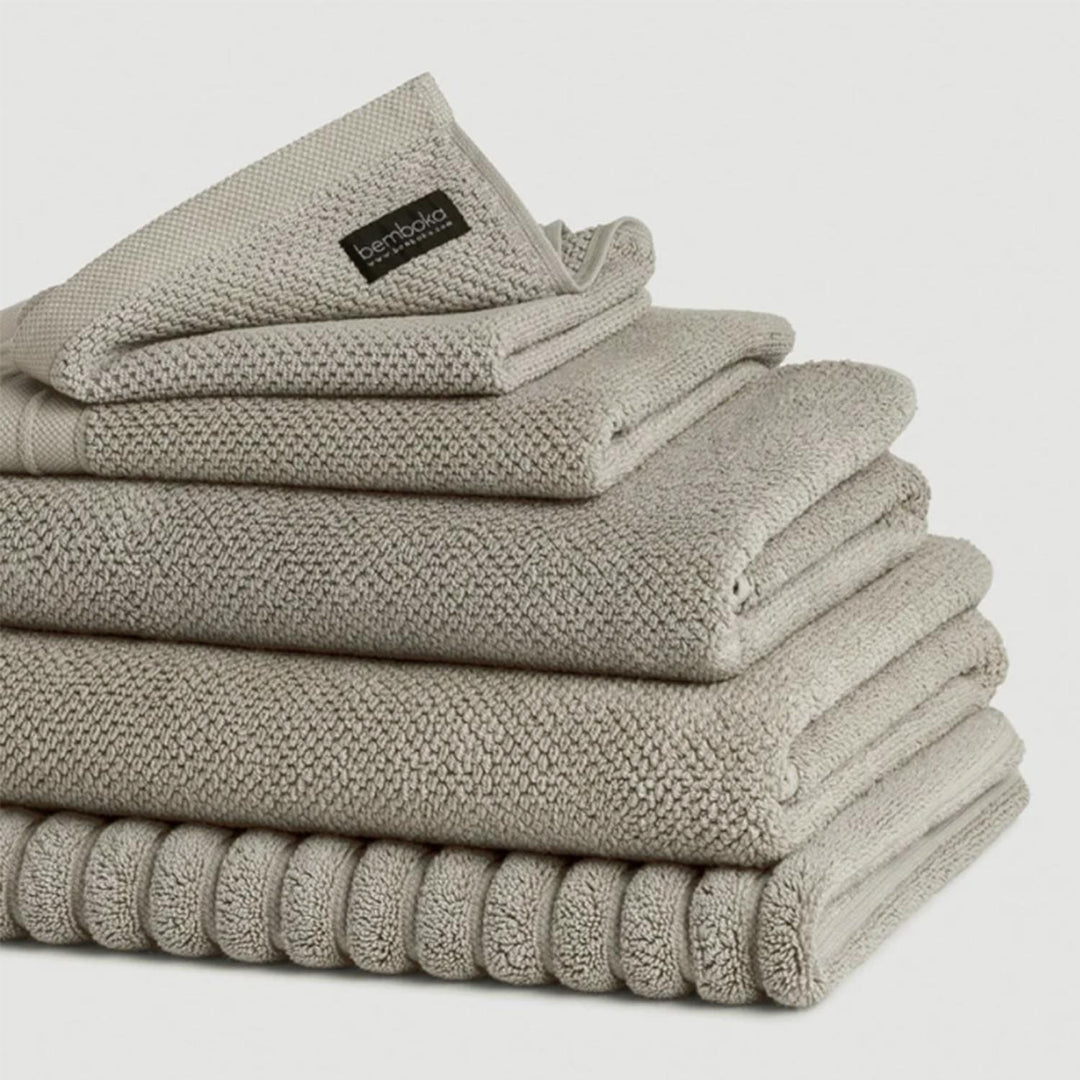 Bemboka bath towels are made of 100% pure cotton. Available in a 650gsm design and made of a unique single-ply absorbent yarn, the long-lasting Bemboka Cotton Bath Towels are finished with a beautiful mercerised cotton, pique border. Designed to encompass fine chenille ribbed stripes with a classic, neutral colour palette, the collection is a timeless bathroom staple.